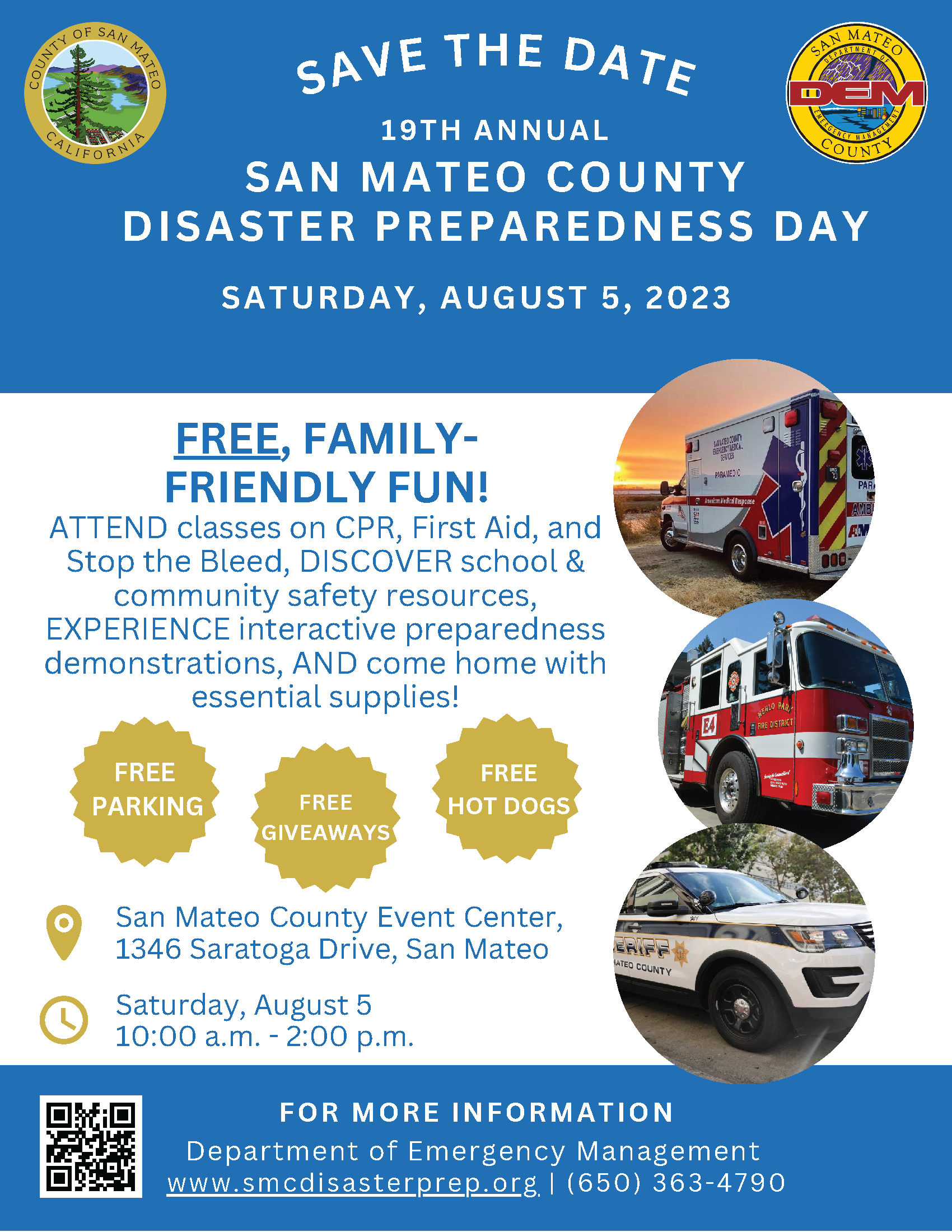 « All Events This event has passed. San Mateo County Disaster Preparedness Day August 5, 2023 « CFSC Central CA Regional Monthly Meeting CFSC Southern CA Regional Monthly Meeting » Add to calendar Google Calendar iCalendar Outlook 365 Outlook Live Details Date: August 5, 2023 Event Category: Partner Events